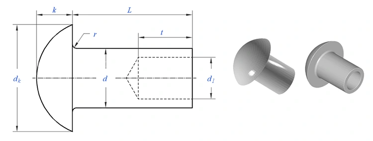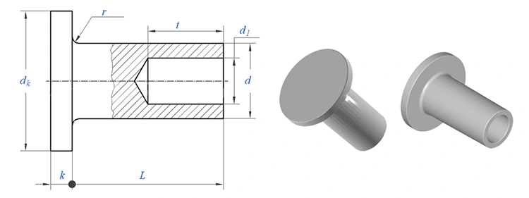 Kerek fejű fél üreges szegecsek