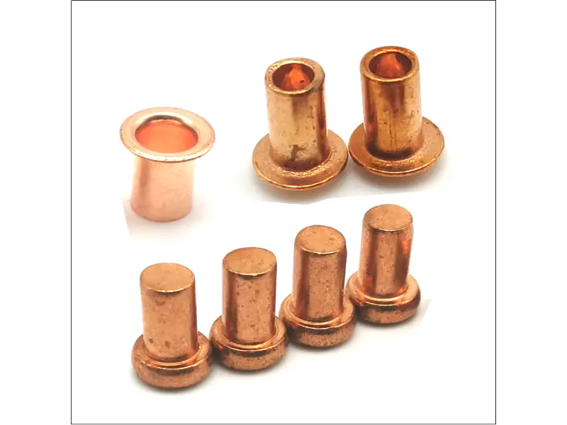 Minden szabványos típusban kaphatók. Megkaphatodtömör rézszegecsek, amelyek szívósak és olyan helyeken használhatók, ahol nagy erőre van szükség a fugában, például nehéz vászon vagy réz tetőfedésben. Vannakfélcső alakú rézszegecsek, amelyek gyorsabban köthetők, és kiválóan alkalmasak bőrárukhoz vagy könnyebb szerelvényekhez. És vannakteljes cső alakú rézszegecsek amelyek perselyként vagy forgócsapként működnek. A fejformák is változnak – kerek fej, lapos fej, süllyesztett fej – attól függően, hogy a szegecs egy síkban látszódjon vagy üljön.