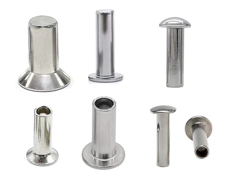 rozsdamentes acél szegecsek, beleértve:rozsdamentes acél szilárd szegecsek, rozsdamentes acél félig tubuláris szegecsek,lapos fej rozsdamentes acél szegecsek, kerek fej rozsdamentes acél szegecsek, countersunk fej rozsdamentes acél szegecsek, gombafej rozsdamentes acél szegecsek, serpenyőfej rozsdamentes acél szegecsek, rácsos fej rozsdamentes acél szegecsek, univerzális fej rozsdamentes acél szegecsek stb.