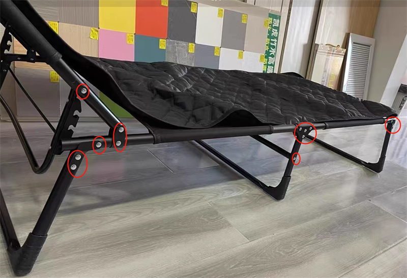 A RIVETS alkalmazás egyik példája aFélig tubuláris szegecsek Az ágy összecsukásakor jelentkezett, csakúgy, mint az alábbi fotó.