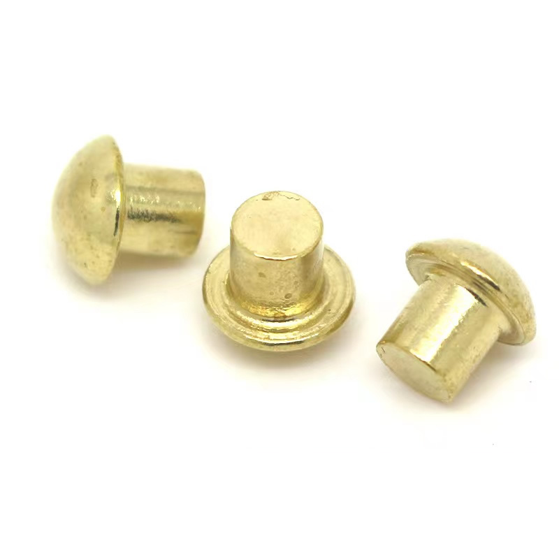 | Sárgaréz félcsöves szegecsek | 20-40% a szár (farok vége) | Közepes (30-50%-kal kevesebb, mint a szilárd) | 80-95% szilárd anyag | Általános összeszerelés, közepes terhelésű elektromos csatlakozások, bútorcsapok |