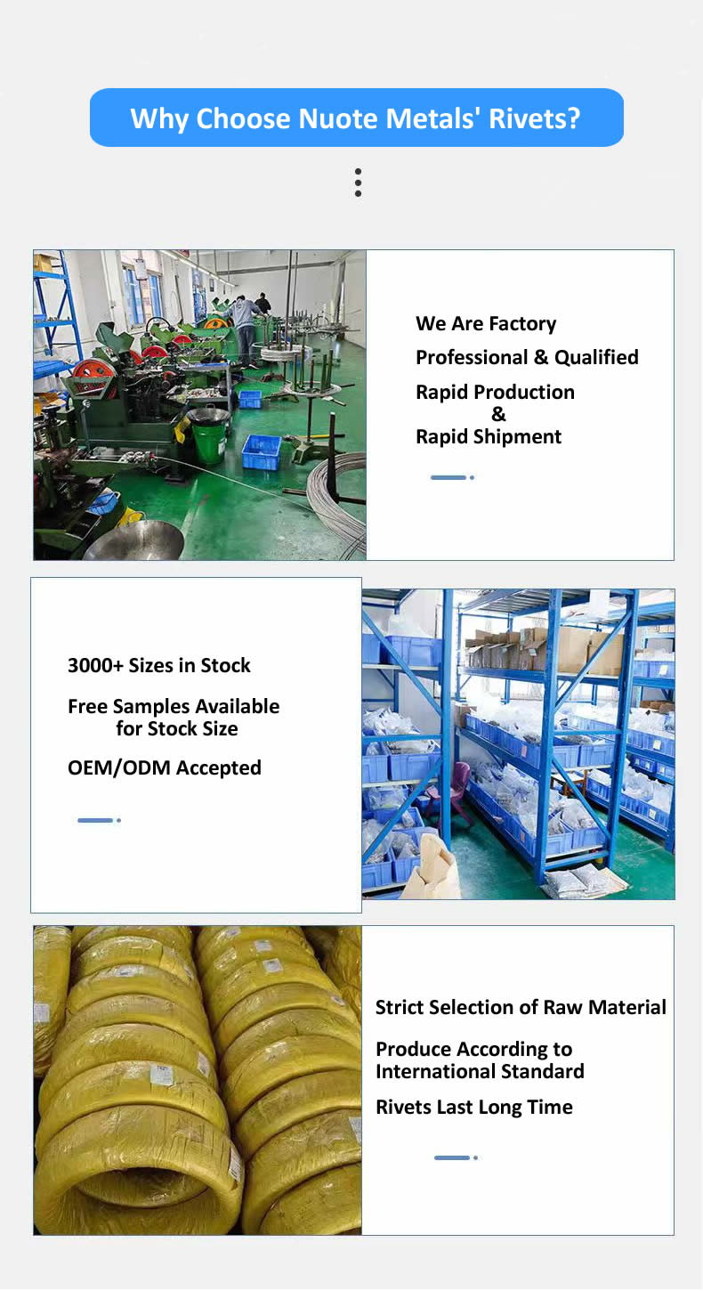 Nuote Metalsmindhárom típust gyártja, lehetővé téve az ügyfelek számára, hogy a szegecskonfigurációt pontosan mechanikai és gyártási követelményeikhez igazítsák.