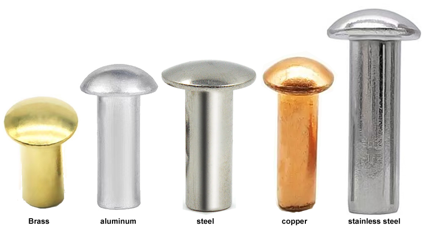 Based on material, rivets can be classified as brass rivets, stainless steel rivets, steel rivets, aluminum rivets, copper rivets, etc.