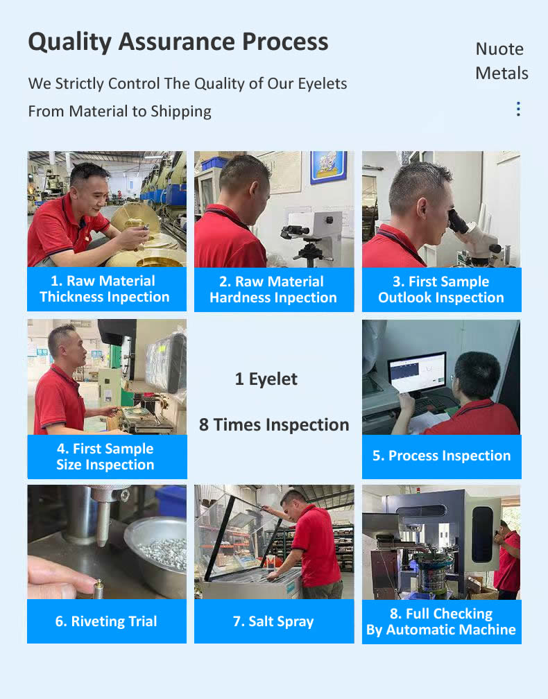 Különböző méretű sárgaréz fűzőszemeket, rozsdamentes acél fűzőlyukakat és acélszemeket, alumínium fűzőlyukakat, rézszemeket és speciális fűzőlyukakat készítünk.